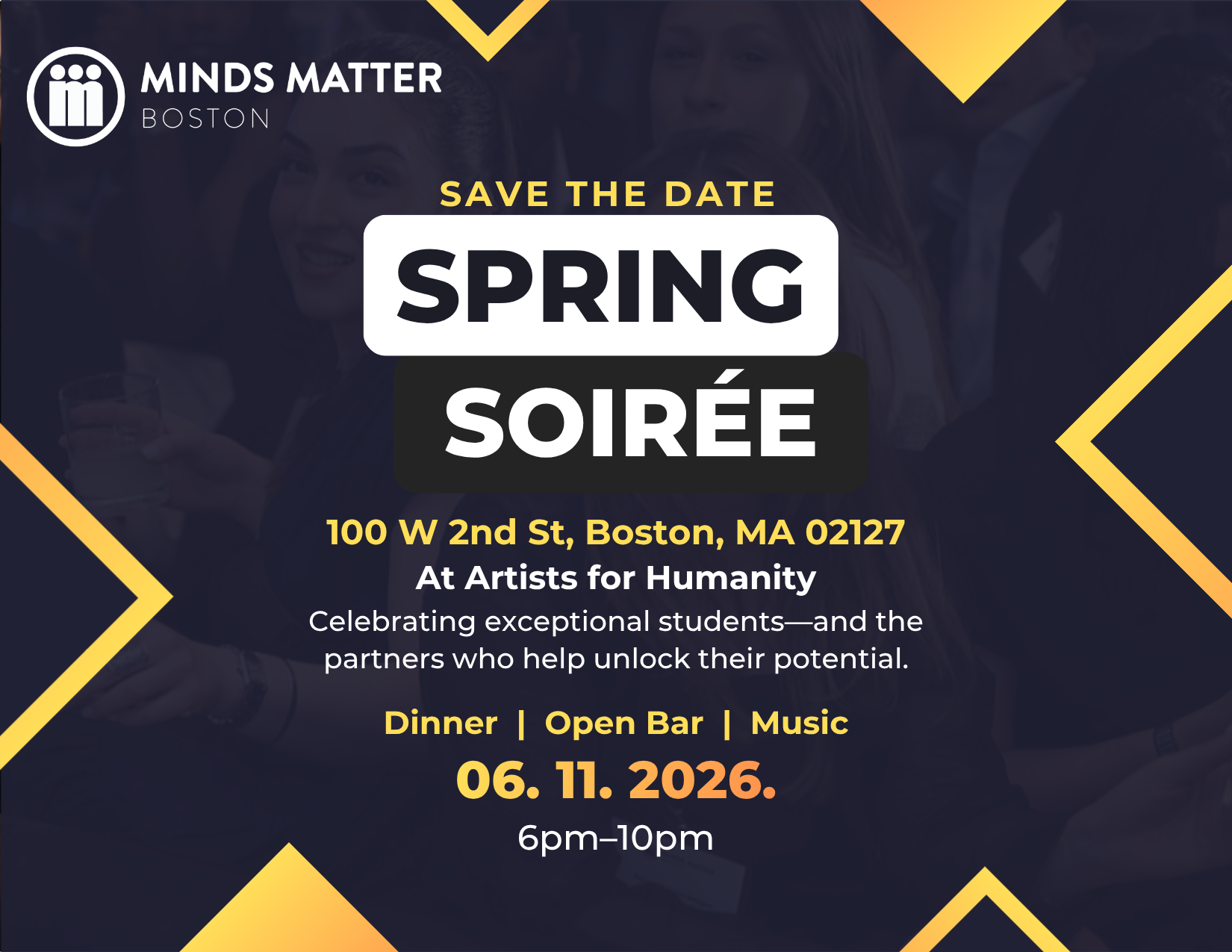 Join Minds Matter Boston at our 23rd Annual Spring Soirée as we celebrate a defining moment in our history: the inaugural year of our College & Career Success program.
